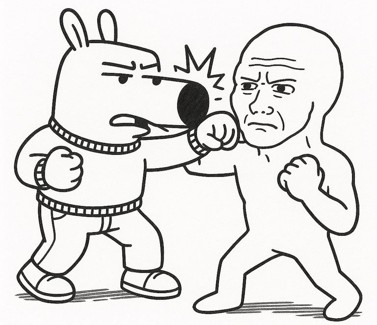 Once upon a timeline, deep inside the strange, pixel-scented catacombs of the memeosphere, the Cult of Wojak thrived. They were everywhere. Crying Wojak, Coomer Wojak, Doomer Wojak, Chad Wojak, Wojak that stared into your soul like a forgotten bill. Their temple was built from raw emotion and unfiltered reactions.